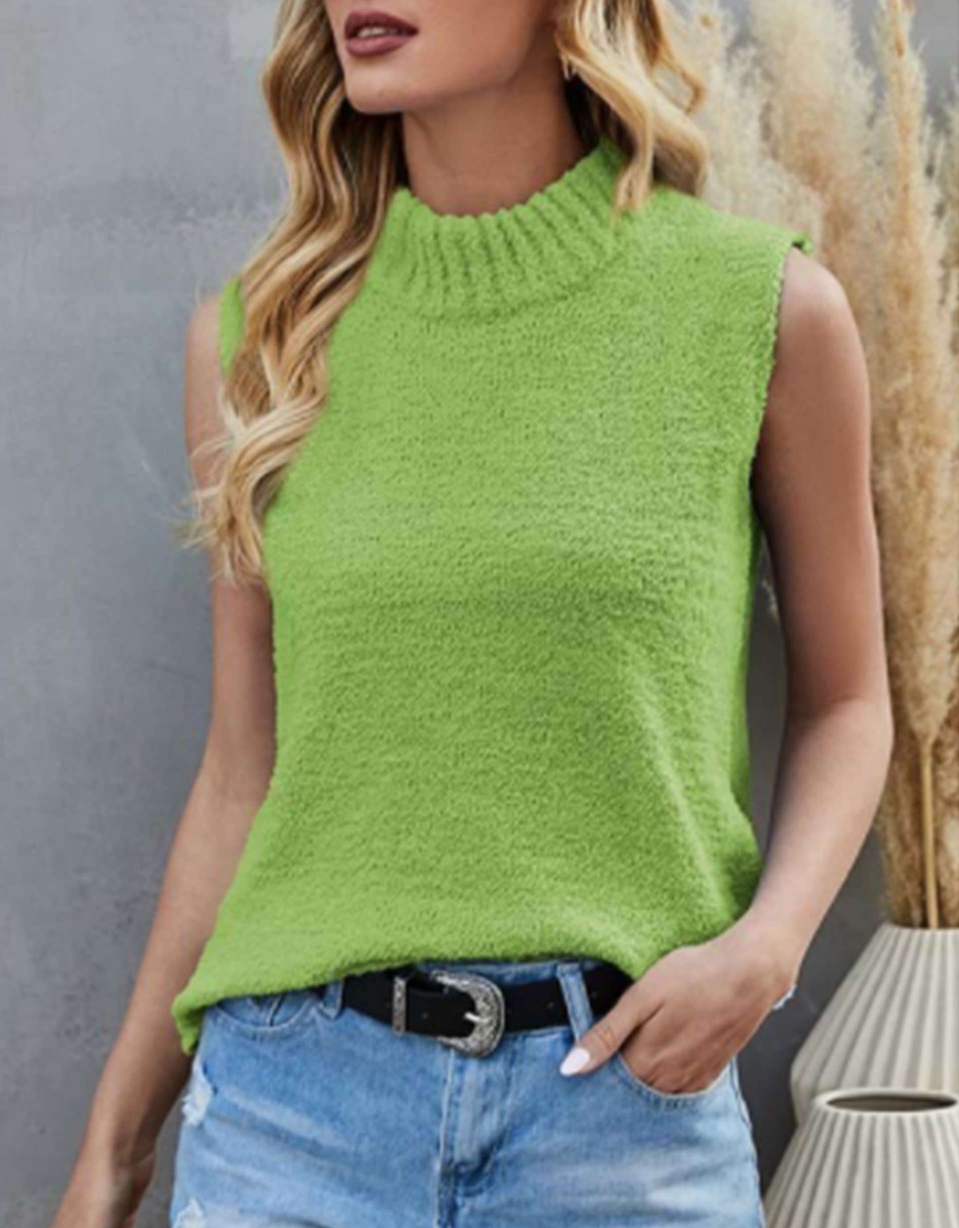 Blusa cuello alto sin mangas en tela de paño